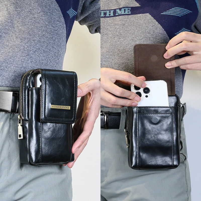 Universal Black PU Leather Mobile Phone Case Bag for Outdoors Climbing - Vertical Large Capacity Zipper Phone Pouch for iPhone