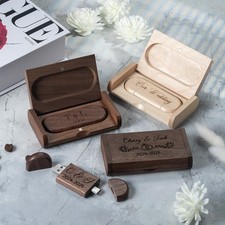 128GB USB2.0 Flash Drive Free Engraved Heart Logo Wooden Gift Box Custom Wedding