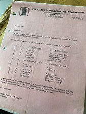 Tecumseh Parts Master Parts Manual Updates & Revisions Late 1980’s